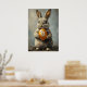 Felz pascoa com este belo coelho ou coelho da Páscoa para segurar um ovo laranja com o símbolo bitmoney num jardim floral. Este adorável animal cripto está em férias, explorando a BTC e apreciando as flores em primavera. No buraco do coelho! BTC para a lua.