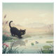 Ontsnap naar een serene wereld met deze charmante illustratie van een nieuwsgierige zwarte kat die bij een vijver met vrolijk dobberende kikkers staat. De zachte pastelkleuren, de gedetailleerde natuurweergave, en de majestueuze berg op de achtergrond creëren een kalmerende, dromerige sfeer. Perfect voor dierenliefhebbers en kunstenthousiastelingen, deze afbeelding straalt speelsheid en rust uit.