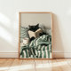 Poster Black Cat reading book in bed