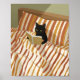 A cute but sassy black cat is reading in a stripe bed. Boho style peaceful Wall Art Poster.