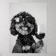 Poster Black & Tan Cavapoo Drinking Wine Wall Art, Black