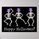 Poster Black White Dancing Skeletons Happy Halloween