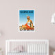 Um poster retrô que nunca foi até agora. Uma recriação de um velho poster. Uma cena do estilo de vintage da Blackpool Sands Beach da época da arte deco. Cores brilhantes com uma mulher na praia a tomar banho de sol com um cobertor vermelho e um boné de bolinhas tipo flapper. Exclusivamente por Zazzle.com/Retro_Art Store.