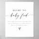Este palpite é que o sinal do jogo do chá de fraldas de bebê apresenta uma fonte moderna boêmica escrita à mão e um simples design minimalista. A combinação simples de cores preto e branco faz dela a adição perfeita a um chá de fraldas de menino ou de menina.