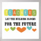 O texto multicolorido e o design de corações lê "Professores Lay The Building Blocks For The Future" em T-shirts, canecas, bolsas, botões, autocolantes, correntes-chave, cartões e outros itens excelente para professores, profissionais da educação ou qualquer pessoa que valorize professores e educação!