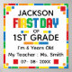 Meninos Legal e Coloridos Edifícios Blocos Personalizados no Primeiro Dia do Poster Escolar.