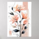 As flores deliciosas, cor-de-rosa-pincelado, sobem elegantemente contra um fundo de creme suave. As pétalas de aquarelas sangram suavemente em lavagens de luz, capturando um senso de movimento e respiração. Ao contrário da primeira versão, esta peça incorpora formas geométricas mais nítidas — triângulos e blocos em terracota e marinho — que lhe dão uma ousada e moderna borda. Os caules e folhas florais são fluidos, pintados em gradientes de cinzas de ardósia e preto-cola, que contrastam perfeitamente com os abacinamentos de pastel quente. Esses sotaques geométricos rígidos criam um ritmo visual, acrescentando tensão e profundidade enquanto mantêm uma estética calma e mínima.