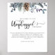 Bem-vindos aos seus convidados à sua cerimônia com este único e elegante sinal de cerimônia desplugada. 8" x 10" é simplesmente um exemplo, você pode escolher entre uma variedade de tamanhos menores e maiores. Delicar o design floral de aquarela no topo em tons azuis, ardósios, sábios e ferrugem. Utilização da caligrafia escrita à mão. Coordenação de produtos disponíveis.