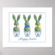 This Easter poster print features cute bunny rabbit green topiaries with pink, blue and yellow bows in blue and white chinoiserie flowerpots. Personalize the holiday message with your choice of special text.
