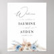 Bem-vindos aos seus convidados ao seu casamento ou evento com facilidade e beleza com o seu Poster de Sinais de Boho Floral Azul e Beige. Excelente para casamentos e festas.