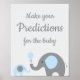 Mostre nossas previsões temedais azuis e cinzas para o sinal de bebê para garantir que seus hóspedes saibam deixar suas previsões para o novo bebê. Procure nossos cartões de previsão coordenativos vendidos separadamente.