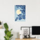 Poster Blue Floral Full Moon Art