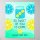 Este sinal adorável será um excelente adicional a uma festa temática sorvete. O design apresenta limões de cor d'água pintados manualmente em azul e amarelo.