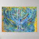 O trabalho artístico original deste menorah é uma pintura mestiça criada com tinta acrílica, pasta de modelagem e papel do artista judeu contemporâneo Meredith Gould.