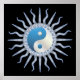 Se você gosta do design Yin Yang, então você vai gostar deste ímpar estrelado Yin Yang projetado com tons de azul e prata. Esta design pareceria excelente em todos os itens de roupa e presentes.