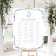Dusty Blue Monograma Floral Vintage Crest Charts Alphabetical Seating Poster. Todos os textos estão pré-organizados para que você personalize fácil e rapidamente com seus próprios detalhes.