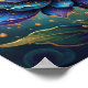 This vibrant poster features blue lotus digital art with gold accents, luminous petals and delicate details-ethereal botanical illustration ideal for décor and meditation.
