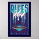 Um poster/impressão de manutenção que apresenta os Blues que se originaram em comunidades afro-americanas, principalmente do Deep South dos Estados Unidos, no final do século 19, a partir de espirituais, músicas de trabalho, gritos de campo, gritos e cânticos, e baladas narrativas simples e rimadas. Impresso com tintas de arquivo de mais de 100 anos em sete diferentes mídias e quadros personalizados.