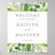 Celebrar em estilo com este moderno e trendente sinal de boas-vindas ao casamento. O design apresenta uma folhagem de aquarela pintada manualmente, com uma fina folha de ouro e uma bela redação tipográfica, perfeita para qualquer celebração de casamento com tema botânico. Esta design é fácil de personalizar com a sua redação de eventos especiais e seus convidados ficarão entusiasmados quando virem este sinal fabuloso.