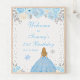Esta elegante e glamourosa placa de boas-vindas da festa de aniversário de inverno apresenta uma bela princesa com cabelo loiro e pele de pele justa em um vestido azul de bola. O texto combina o script manuscrito e as fontes sans serif modernas para um aspecto elegante e sofisticado. Os arranjos florais, flocos de neve e confete prateado criam a mistura perfeita de rústico e chic. Gráficos por www.etsy.com/uk/shop/SunflowerDayLove