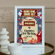 "Venha Um, Venha Todos!" Design de Festa de aniversário de de carnaval moderno e colorida para rapazes ou raparigas em cores neutras em termos de gênero, de azul, vermelho e amarelo, com elementos brilhantes amarelos falsos neon e animais bonitos de circo e palhaços.