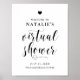 Sinal de boas-vindas à festa de noivado virtual simples e elegante com caligrafia em negrito, tipografia clássica e um acento de coração. Personalize adicionando um nome, data e outros detalhes. Este sinal de boas-vindas à festa virtual simples em preto e branco é perfeito para qualquer tema e estação de festa.