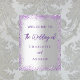 Um fundo com aparência de prata falsa, decorado com faíscas roxas. Com o texto: Bem-vindo ao Casamento de... Personalize e adicione seus nomes. Texto roxo.