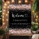 Um poster de boas-vindas para uma festa de aniversário de 21 ruas (ou qualquer idade) entre giros e glamourosos. Um fundo na moda preto decorado com um confete rosa dourado. Personalize e adicione um nome e idade 21. Cartas brancas. Bem-vindo é escrito com coração.