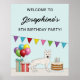 A ilustração original do desenho animado de Destei de um lindo cão branco suíço Shepherd / German shepherd branco. O cão é colocado num ambiente de aniversário colorido. Há um bolo de aniversário com algumas velas, balões de aniversário coloridos e uma faixa de bunting, assim como duas caixas presentes. Há também três áreas de texto personalizáveis.