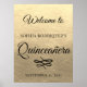 O simples champanhe de ouro Quinceañera 15 de Aniversário apresenta caligrafia de guião quic e tipografia moderna. Simpy adicione seu nome a essa poster de boas-vindas festiva, elegante e na moda Quinceañera. Desenvolvido exclusivamente para você pelo Happy Dolphin Studio. Se precisar de ajuda ou produtos correspondentes, entre em contato conosco em happydolphinstudio@outlook.com.