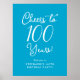 Elegante Blue Cheers to 100 Anos Aniversário Poster Mostra este Elegante Blue Welcome Message Poster na entrada da festa de aniversário especial de marco. O texto é totalmente personalizável para que você possa personalizar a mensagem perfeita para seus convidados. Compre nossa loja para mais planejamento de festas e materiais decorativos!