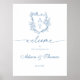 Elegante caligrafia poeirada azul monograma floral crest poster clássico de boas-vindas.