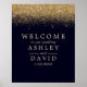 Poster de Boas-vindas ao Casamento Azul do Marinho Confetti Dourado. Linda e simples confete de ouro de vidro vintage contra um fundo azul marinho. Este design moderno personalizado pode ser facilmente personalizado com seus próprios detalhes.