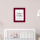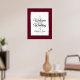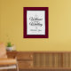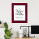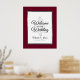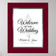 Personalize este símbolo elegante de "Bem-vindo ao nosso Casamento" com seu próprio toque especial. Esta design festiva mostra os nomes da noiva e do noivo e a data do casamento, uma árvore de Natal estrelada e um elegante quadro de folha prateada sobre um fundo burgundy. Perfeito para um casamento de inverno ou Natal.
