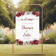 Bem-vindos aos seus convidados em estilo com este elegante sinal de poster de casamento do Burgundy Watercolor Floral Wedding Suite. Com burgundy e florais de cor-de-água prateada em cima e em baixo, esta placa enquadra lindamente seus nomes personalizados e data de casamento. Perfeito para exibir na cerimônia ou entrada de recepção, esta poster adiciona um toque romântico e coeso à sua decoração de casamento.