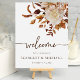 Este elegante cartaz de casamento apresenta cor d'água queimada manualmente laranja e folhas de terracota, creme e dálias beges, e belas rosas de cor ferrugem sobre fundo branco com texto marrom. Localizar itens correspondentes na Coleção Romance do outono Branco.