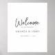 Este simples modelo de boas-vindas de na moda de casamento apresenta um design limpo, minimalista e moderno. Demos a este design minimalista um caráter distinto combinando uma fonte animada e relaxada de 'Bem-vindo' com seus primeiros nomes destacados abaixo entre o resto da mensagem de boas-vindas e sua data, e deixamos um espaço considerável em todos os lados do texto para um olhar desordenado que desenhar atenção à mensagem. O texto é preto sobre um fundo que é definido como transparente para que a cor do papel seja o plano de fundo. Use sua inspiração e as ferramentas intuitivas de design para fazer com que este versátil casamento seja poster único. E por favor, deem uma olhada na nossa coleção de sinais de boas-vindas para outras designs simples, incluindo uma versão horizontal desta design, e outras cores também!