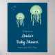 Dê as boas-vindas aos seus convidados para o seu chá de bebê com tema submarino com um pôster de boas-vindas azul minimalista com águas-vivas. Ilustrado e projetado por Patricia Alvarez.