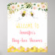 Bem-vindos aos convidados do seu partido com um sinal personalizado adorável. Enquadre o sinal e exiba-o numa mesa perto da entrada ou monte a espuma poster e mostre-a fora em um calcanhar. O design apresenta abelhas com florais de aquarelas e confete de folha de ouro falso com borda de mel.