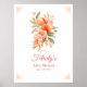 Cor do poster de boas-vindas do chá de fraldas de pêssego 2024.