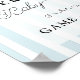 Bem-vindos aos seus convidados em estilo com o nosso Poster Preppy Baby Blue Tênis! Este cartaz encantador apresenta um fundo listrado macio, azul claro e branco, criando uma atmosfera quente e convidativa para sua celebração. A estética chique pré-disquete é perfeitamente complementada por um humor tênis, fazer ideal para os futuros pais que amam o tênis. Escrita manual elegante e tipografia sofisticada adicionam um toque de classe, enquanto cada detalhe pode ser personalizado para corresponder ao seu chá de fraldas exclusivo. Quer você queira incluir os nomes dos pais, a data do evento ou uma mensagem especial, este sinal é totalmente personalizável para tornar o seu evento realmente um de cada tipo. Recursos: Pó pastel com mutação azul e fundo listrado branco para um tênis de aparência macia e pré-descartável para uma letra de toque esportiva, mas elegante, e tipografia moderna Texto totalmente personalizável para se adequar aos seus detalhes de evento Perfeito para acolher convidados para o seu chá de fraldas temático tênis Defina o tom para uma celebração memorável com este delicioso sinal de boas-vindas — onde o esporte se encontra doce armar o caminho! Projetado pelo Simple Desert Design Studio. Envie-nos uma mensagem para coordenarmos mais a decoração do chá de fraldas e os favores ou quaisquer produtos personalizados.