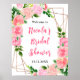 Este sinal de boas-vindas ao chá de noiva divertido e caprichoso apresenta rosas cor-de-rosa em aquarela e folhagens em uma moldura geométrica dourada. O texto combina fontes manuscritas e serifadas para um visual elegante e moderno. Isso é perfeito para um chá de noiva rústico de primavera ou verão.