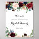 Este cartaz de boas-vindas para chá de noiva rústico outonal burgundy é perfeito para uma celebração simples de chá de noiva. O design apresenta flores radiantes e graciosas pintadas à mão em burgundy, vermelho, azul-marinho, azul e rosa, inspirando beleza natural.