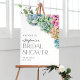 Bem-vindo a convidados para o seu evento com este sinal de boas-vindas personalizável ao chá de panela. Apresenta suculentes de cor aquosa azul, verde, rosa e ouro. Personalize adicionando seus detalhes. Este chá de panela suculento é perfeito para chás de panela de verão.
