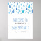 As gotas de chuva azul de bebê bonitas caem em direção aos seus detalhes personalizados sobre este bonitinho sinal de boas-vindas a um bebê, chá ou chá. Projetado por Thisnotme©