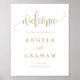 Bem-vindos convidados para o seu casamento com este cartaz de boas-vindas. Apresenta uma escrita elegante e uma tipografia simples. Personalize adicionando nomes e obrigado sua mensagem. Este sinal de boas-vindas será perfeito para qualquer tema de casamento e estação.