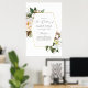 Poster de boas-vindas do casamento Floral com peônias cor-de-rosa pinceladas, ervas selvagens, algodão e lírios com estrutura geométrica de ouro personalizável para suas especificidades de evento.