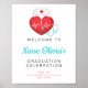 Esta placa de boas-vindas de enfermeira apresenta um coração de aquarela com batimento cardíaco, estetoscópio e enfermeira que se combinam com cores brilhantes e fontes divertidas. Utilizar facilmente este convite para qualquer formação de enfermeiro ou evento de enfermagem, uma vez que todos os textos são 100% editáveis.