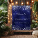 Um poster de boas-vindas para uma festa de aniversário de 21 ruas (ou qualquer idade) entre giros e glamourosos. Um fundo azul marinho com poeira elegante falso prateada. A cor azul é irregular. Personalize e adicione um nome e idade 21. Cartas brancas.