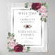 Dê as boas-vindas aos seus convidados para o jantar de ensaios bege e prata em borgonha com um elegante letreiro de boas-vindas floral. Itens correspondentes disponíveis.